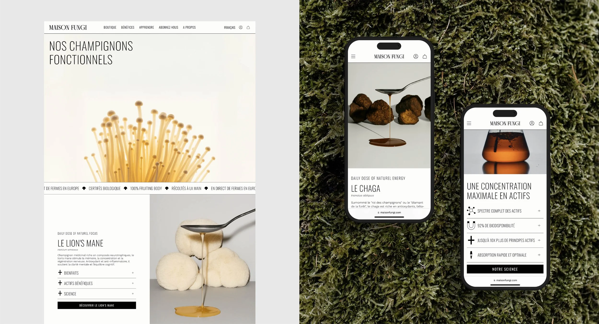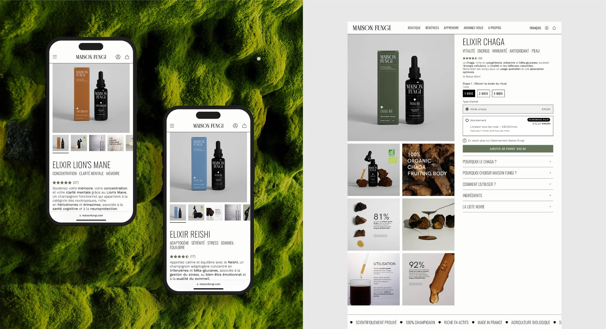 Maison Fungi célèbre la puissance des champignons fonctionnels. Entre savoir ancestral et science moderne, elle crée des formules végétales, véganes et sans sucre ni alcool, pensées pour soutenir la vitalité, la clarté mentale et l’équilibre émotionnel. Chaque produit est conçu avec soin, alliant qualité, efficacité et respect de la nature, pour accompagner le corps et l’esprit au quotidien.